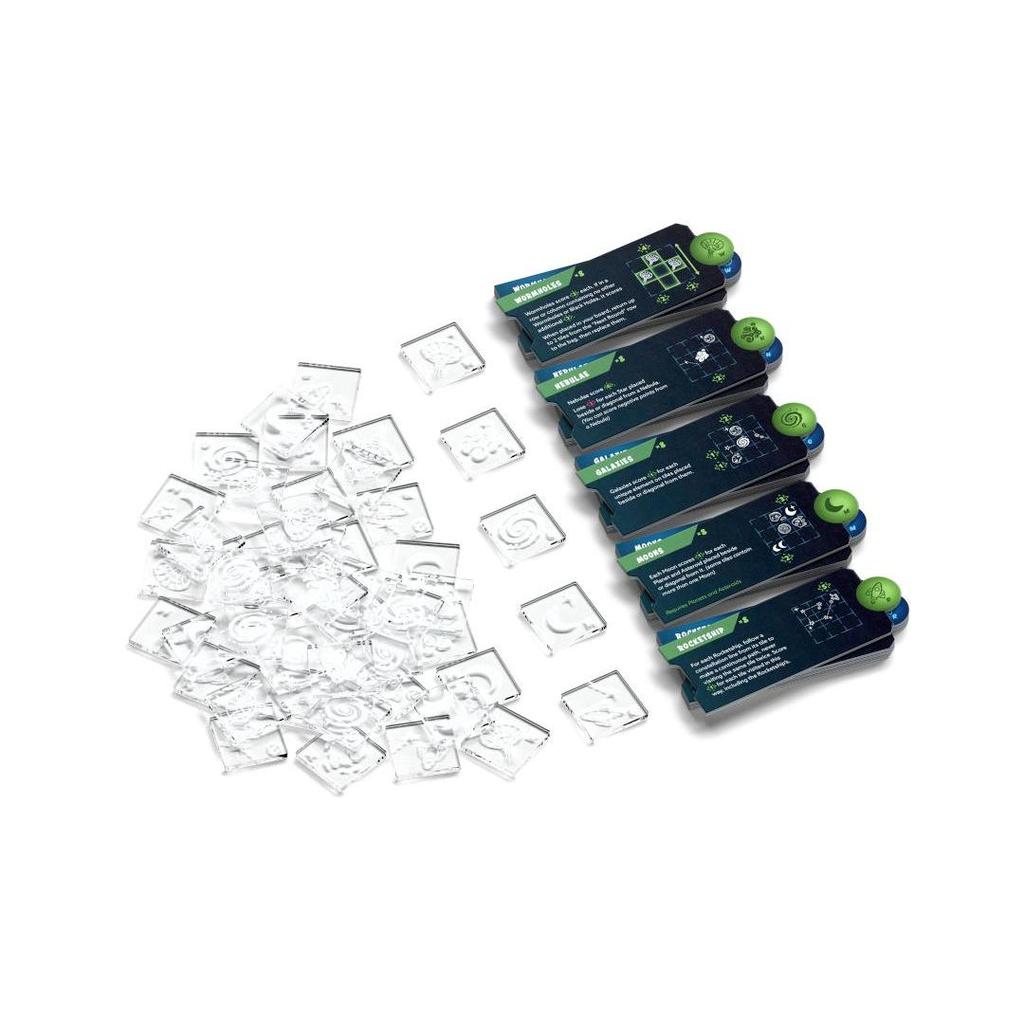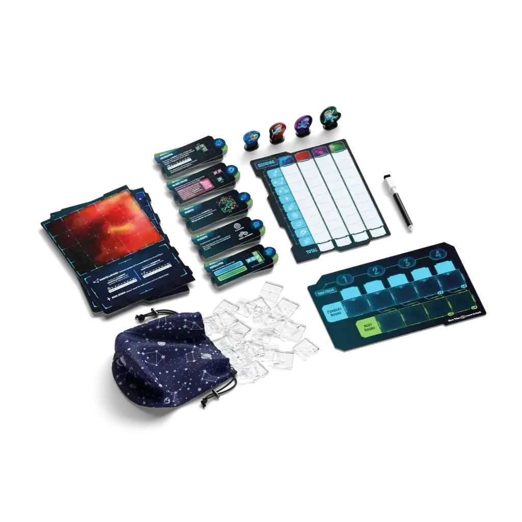 Draft clickity-clackity, transparent tiles to fill your star chart and explore the universe. You'll connect Constellations, build belts of Asteroids, and study your Satellites with the game's modular scoring system. Be careful of those pesky Black Holes—that is, unless you've got the perfect place to put them!