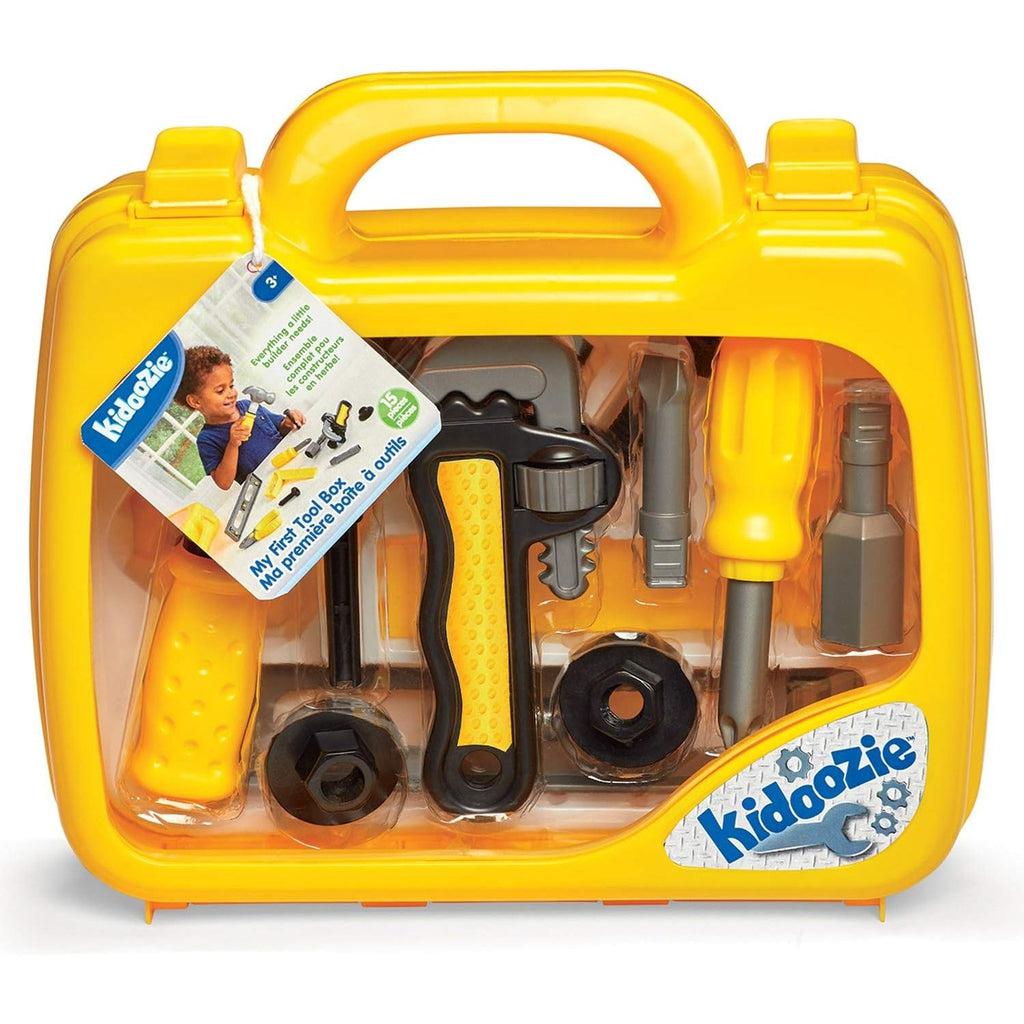 Whether your child loves watching you put together a bookshelf or their favorite channel is the Home and Garden network, this toolbox is an instant hit with DIY kids. They get all the tools the recognize the professionals using, without any of the dangers. The screwdriver really twists the screws and the wrench really tightens the bolts. These tools are designed to function, making the experience even more real for kids. They'll be fixing leaky sinks and wobbly chairs in no time. The best part of this set is the toolbox. When building or fixing time is over, your child can just pack up all the tools to put them away. It even features a carry handle that makes it easy to pack up and take to grandma's for the weekend to do some renovations in her home too. Kidoozie toys are engaging, educational and FUN. Our broad range of high-quality toys have won numerous awards and are safe and well designed. Innovative toys encourage movement, problem-solving and pretend play through various themes. Stimulate the imagination and enable learning through play. Package contains (1) Kidoozie My First Toolbox. Includes toolbox, screwdriver, 3 screwdriver heads, hammer, pliers, ruler, level, vice, nail, 2 nuts, and 2 bolts. Recommended for children ages 3 years and older.
